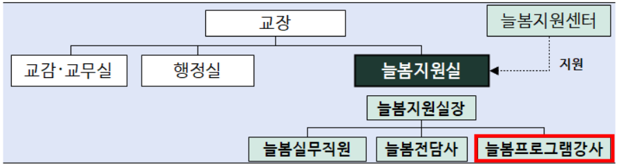 25년도에는 전담조직인 늘봄지원실을 운영하며, 늘봄 프로그램 강사는 해당 실에 소속됩니다.