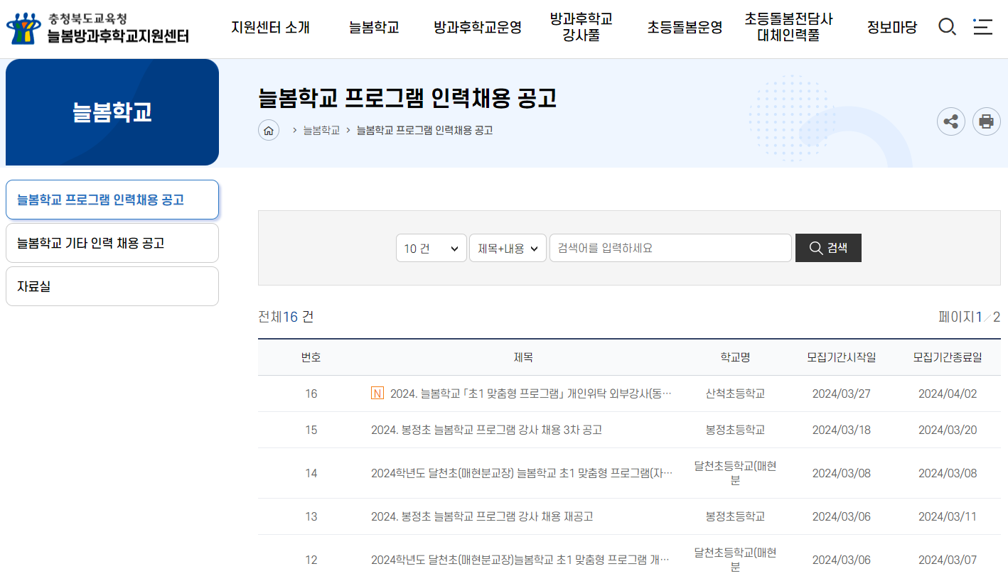 예를 들어, 충청북도교육청 홈페이지에 접속하면 학교별 강사 채용 공고를 확인할 수 있습니다.