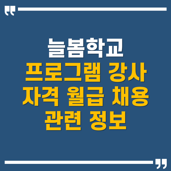이상으로 늘봄학교란 무엇인지 그리고 강사 자격 및 월급, 채용 정보까지 알아보았습니다.