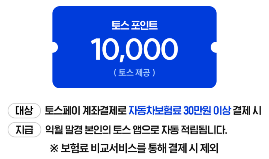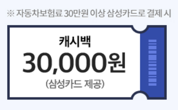 삼성화재에서는 다른 보험사와 마찬가지로 30만원 이상 결제 시, 캐시백, 토스포인트, 주유권을 받을 수 있습니다.