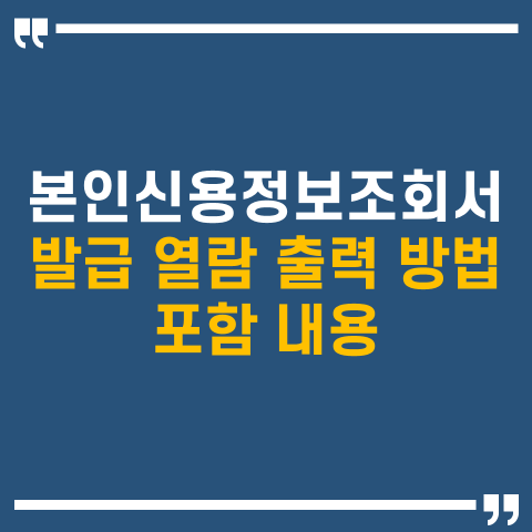 이상으로 본인 신용정보조회서 개념과 발급, 열람, 출력 방법 그리고 포함 내용까지 알아보았습니다. 수시로 본인신용정보조회서 내용을 확인하면서 신용 관리를 잘하시길 바랍니다.