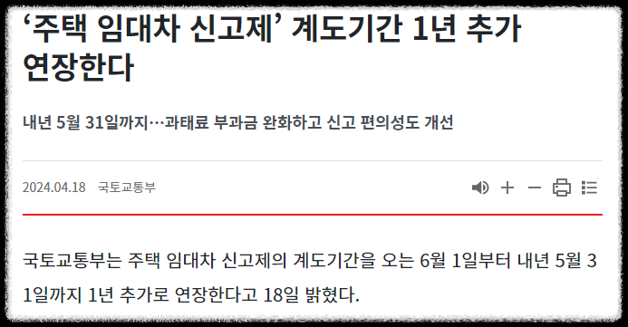 이번에 '주택 임대차 전월세 계약 신고제'의 계도기간이 1년 연장되어 ~25년 5월 31일까지로 변경되었습니다. 이후에는 의무사항으로 과태료가 부과될 수 있습니다.